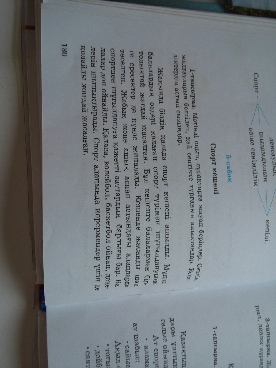 Жақында,қалада,мұнда,күнде,кешенде,алаңында,алаңдарда-Жатыс септік!!! Біздің,балалардың,заттардың- Ілік септік!!!Кешенді,Жасанды-Табыс септік!!!түрімен,балалармен,спортпен-Көмектес септік!!!Шұғылдануына,бірге-Барыс септік!!!!!Спорт,шөп,аспан,доп,волейбол,баскетбол-Атау септік