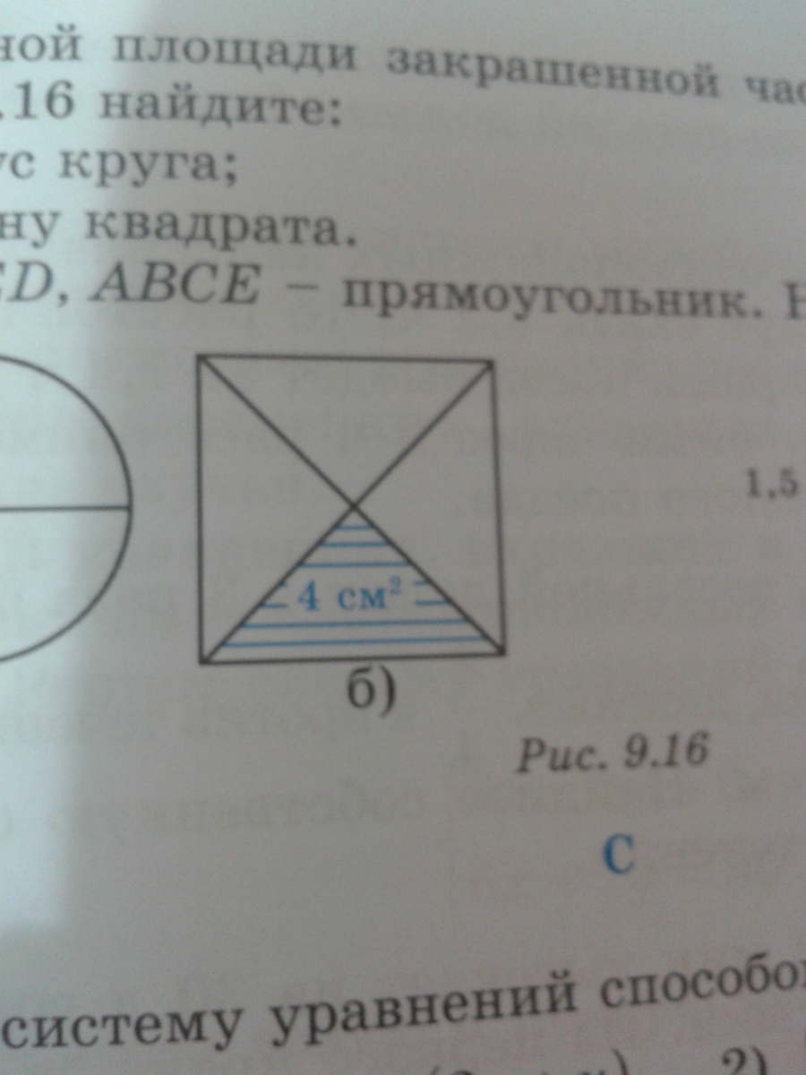 по данной площади закрашенной части каждой фигуры на рисунке найдите сторону квадрата