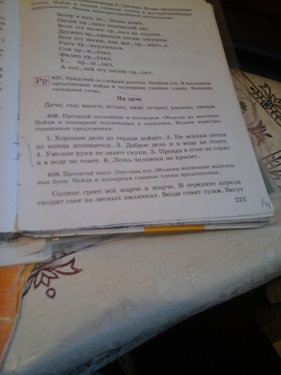подлежащее одной чертой, сказуемое двумя подчеркивается