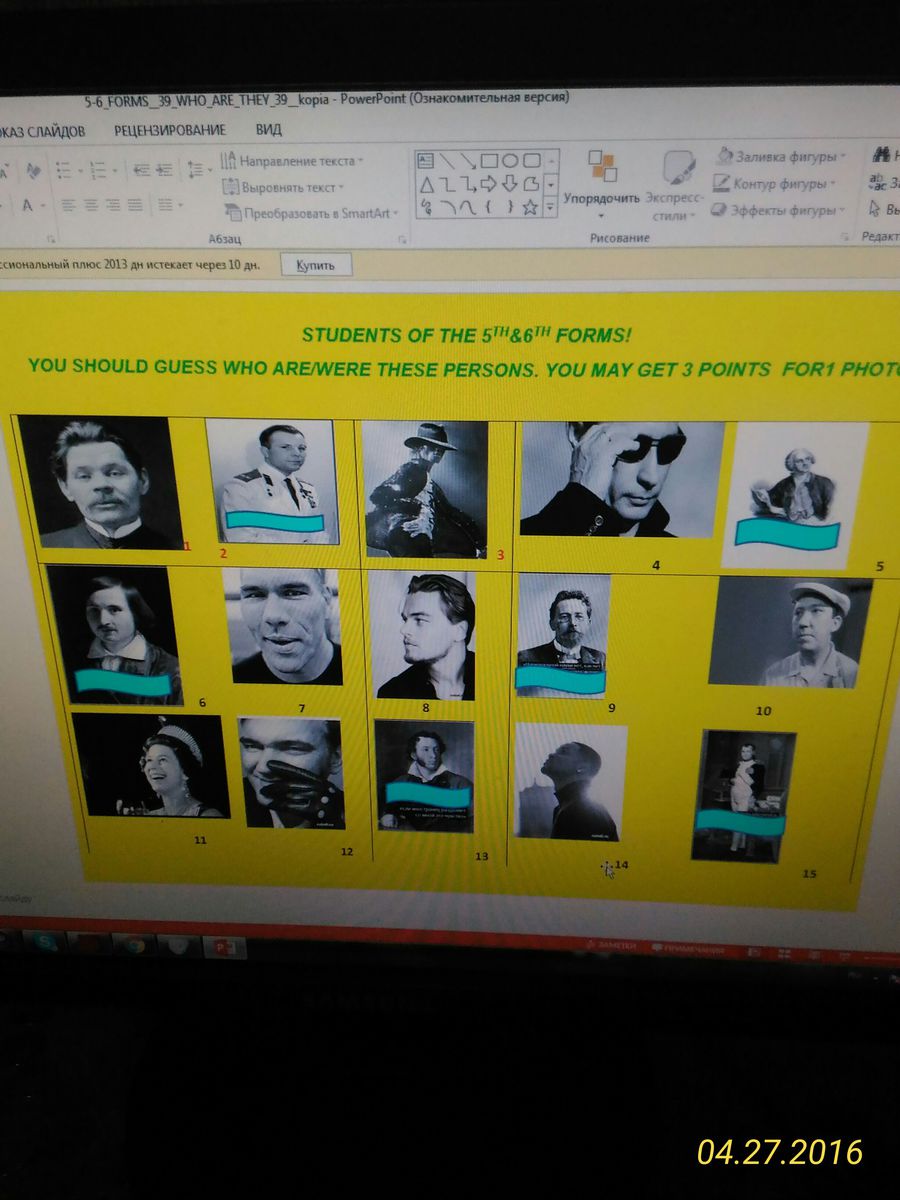 Надо написать фамилии и имена на английском. У нас идет неделя английского ))