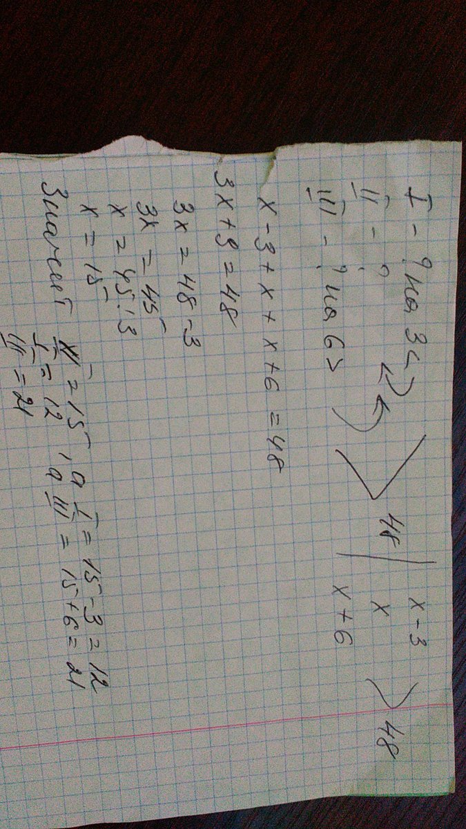 48 книг расставили по трем полкам,причем на первой полке оказалось на 3 книги меньше,чем на второй,а на третьей-на 6 больше чем на второй.Сколько книг стоит на первой полке.
