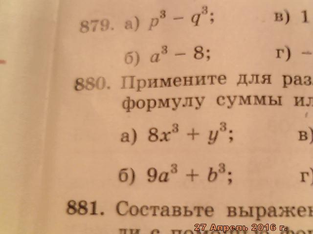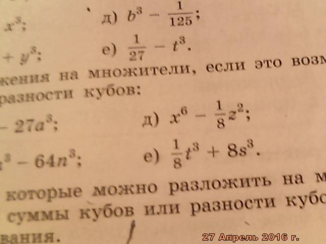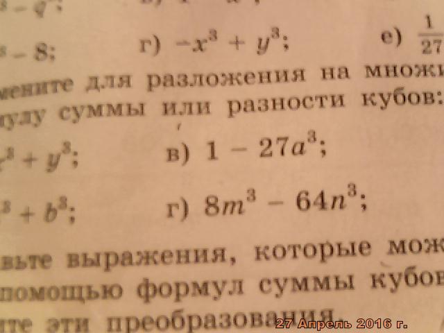 ЗАДАНИЕ ЗВУЧИТ: ПРИМЕНИТЕ ДЛЯ РАЗЛОЖЕНИЯ НА МНОЖИТЕЛИ,ЕСЛИ ЭТО ВОЗМОЖНО,ФОРМУЛУ СУММЫ ИЛИ РАЗНОСТИ КУБОВ