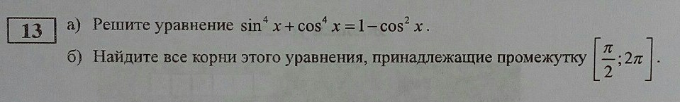 a) Решите уравнение: sin⁴x+cos⁴x=1-cos²x