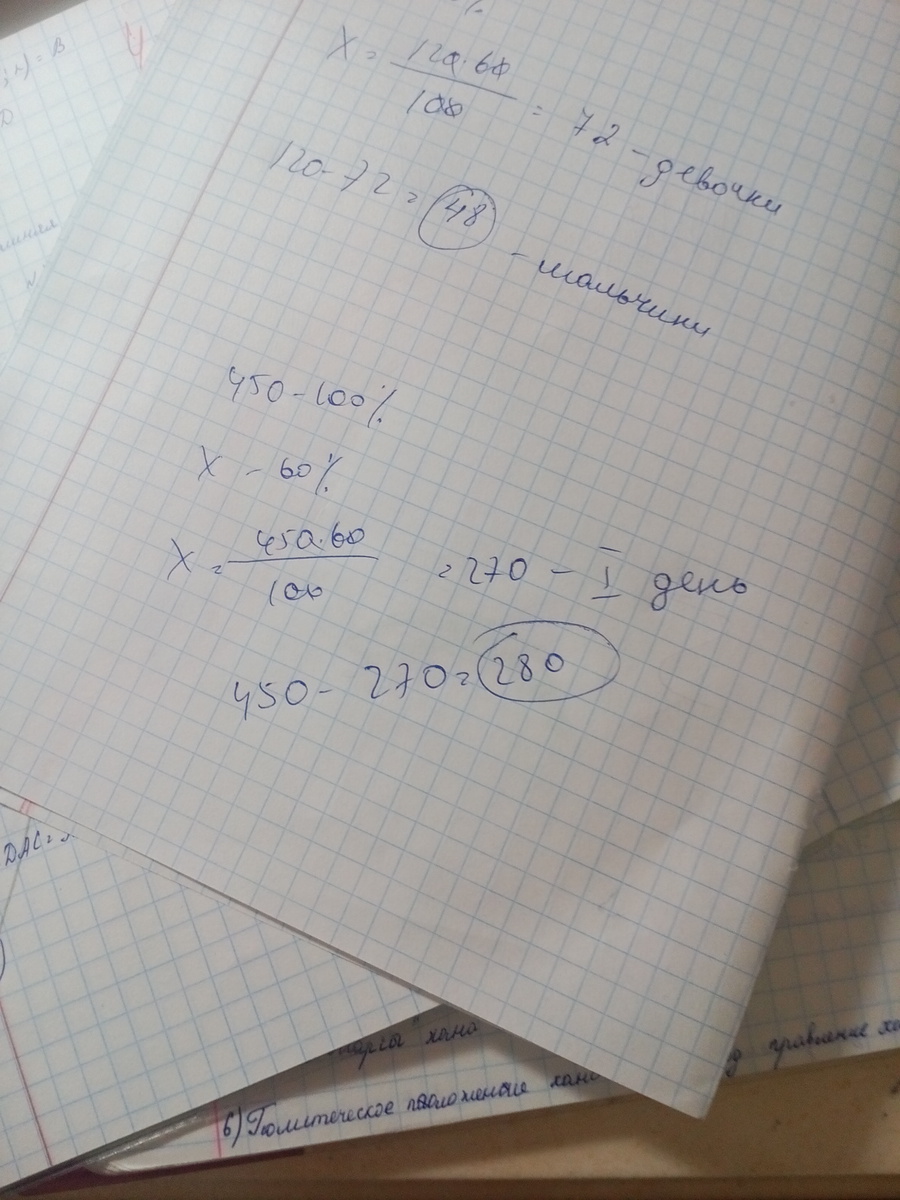 Помогите пожолуйста решть Рабочий должег был изготовить 450 деталей.В первый день он изготовил 60% деталей.,а остальные -во второй. Сколько деталей изготовил рабочий во второй день.?