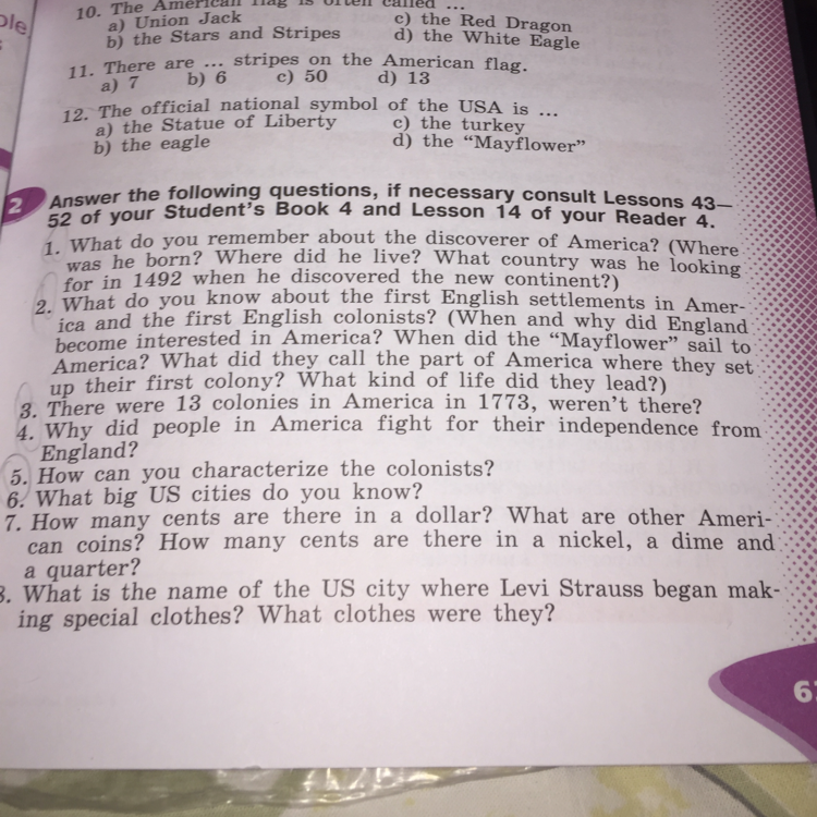 1. The discoverer of America was Christopher Columbus. He was born in Italy, but lived in Spain for a long time. He was looking for India and was sure that he looked fir it, but it was America.