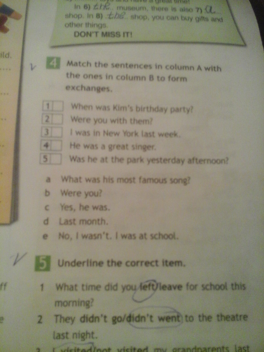- No, I wasn't. I was at school. (e) - Нет, я не был. Я был в школе.