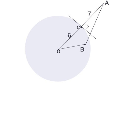 Радиус окружности с центром в точке О равен 6 см отрезок AB пересекает окружность так,что точка A лежит вне окружности,точка B внутри окружности,AO равно 13 см.Может ли отрезок AB равняться 4 см?