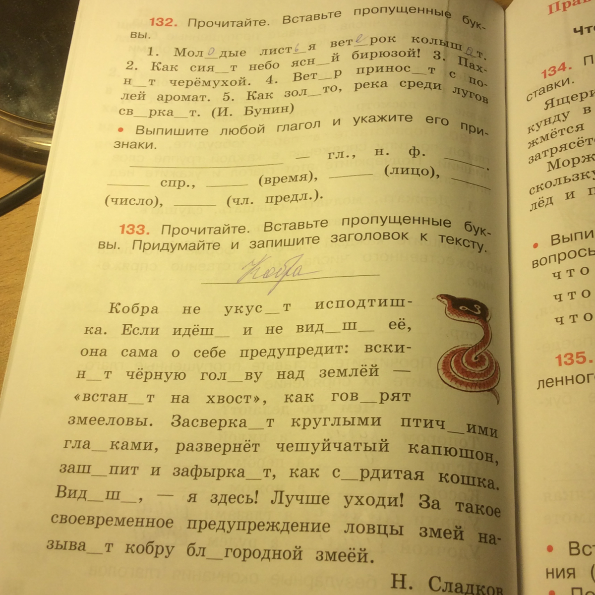 Кобра не укусит исподтишка. Если идёшь и не видишь её, она сама о себе предупредит: вскинув чёрную голову над землёй - "встанет на хвост", как говорят змееловы. Засверкает круглыми птичьими глазками, развернёт чешуйчатый капюшон, зашипит и зафыркает, как сердитая кошка. Видишь, - я здесь! Лучше уходи! За такое своевременное предупреждение ловцы змей называют кобру благородной змеёй.