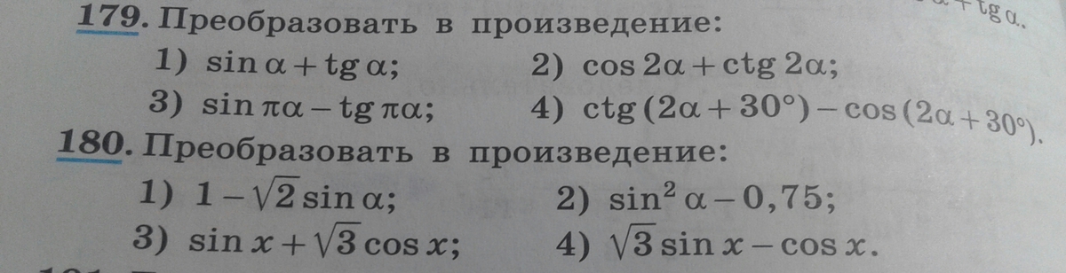 ctg(2a+30)-cos(2a+30)=cos(2a+30)(1-sin(2a-30))/sin(2a-30) дальше по теоремам сложения