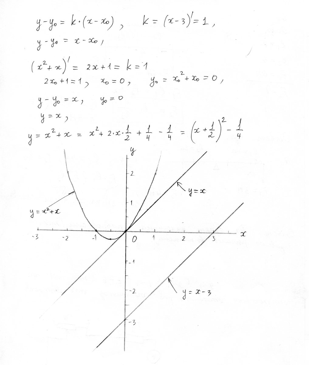 написать уравнение касательной к графику функции проходящей параллельно прямой y=x^2+x, y=x-3. Сделать чертеж