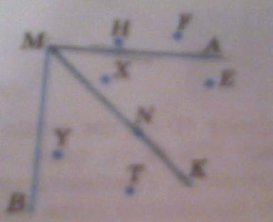 Какие из отмеченных на рисунке 172точек лежат внутри угла AМK ? Какая точка лежит внутри угла АМВ но вне угла АМK ? Какие точки лежат на сторонах угла АМK ?