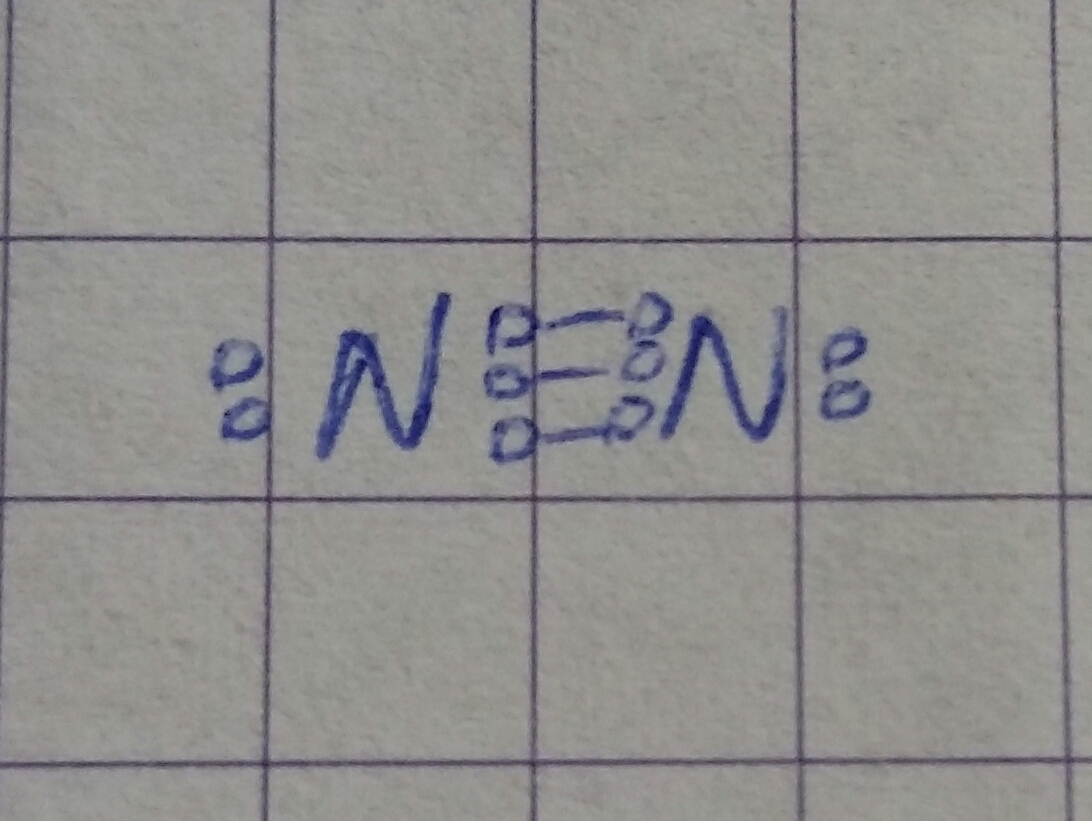 N2 -- ковалентная неполярная связь. До завершения уровня не хватает трех электронов.
