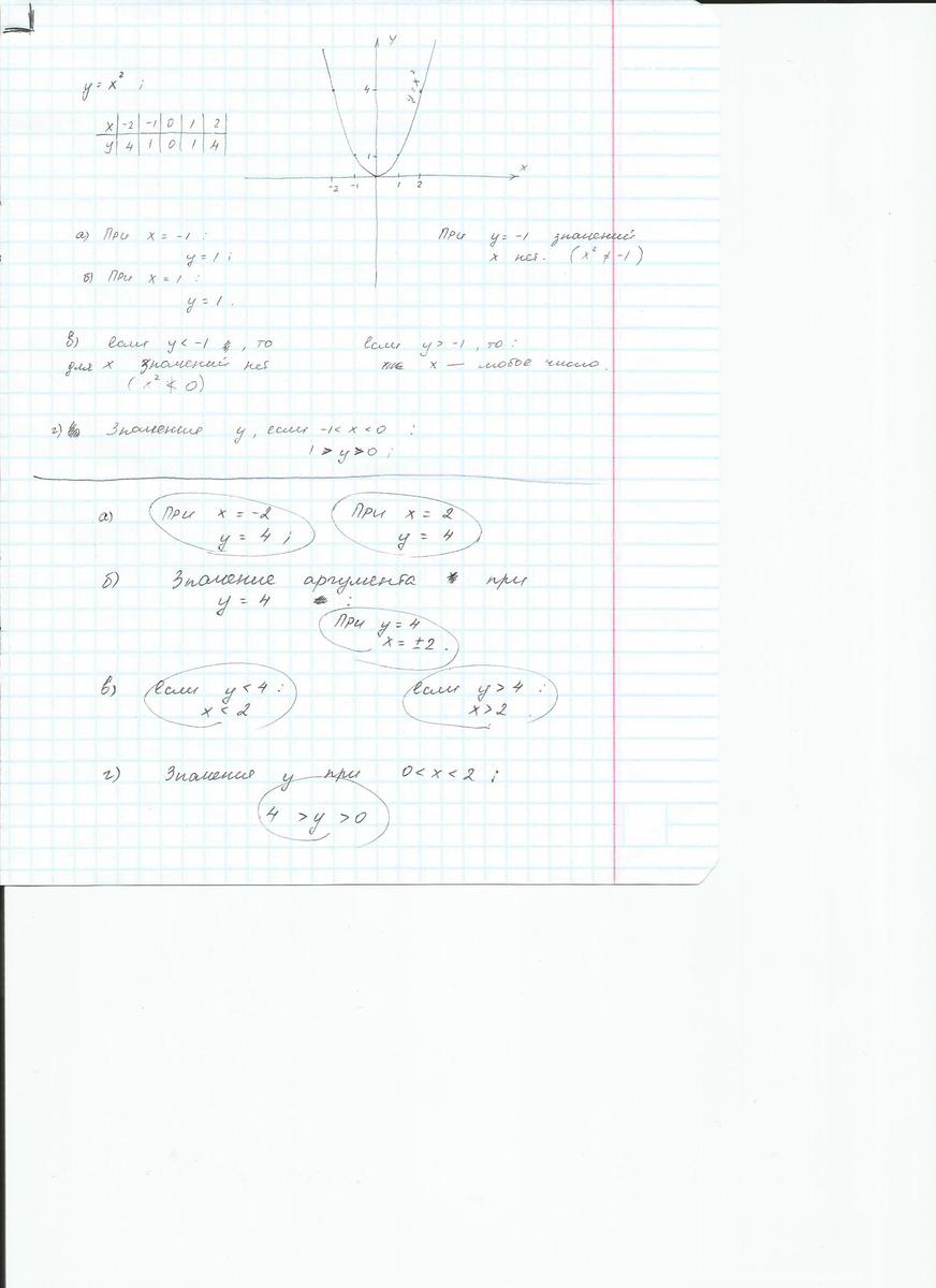 Постройте график функции y=x^2. С помощью графика найдите: а)Значения функции при х= -1, х= 1.
