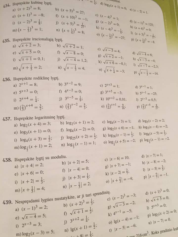 Если справа отрицательное число, номера g, h, o, p - решений нет