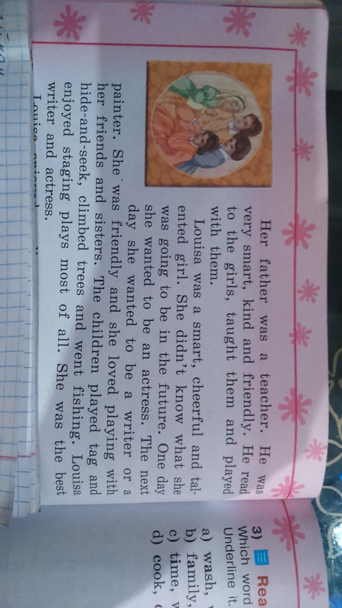 Ее отец был учителем. Он был очень умный, добрый и дружелюбный. Он хорошо относился к девушкам, учил их и играл недеформированной с ними. Луизе была умной , веселой и талантливой девушкой. Она не знала, кем она будет в будущем. Однажды она хотела быть актрисой. На следующий день она хотела быть писателем или художником. Она была дружеской, и она любила играть со своими друзьями и сестрами. Дети играли в прятки, лазили по деревьям и ходили на рыбалку. Луизе пользовалась постановкой пьесы больше всего. Она лучше всего была писателем и актрисой