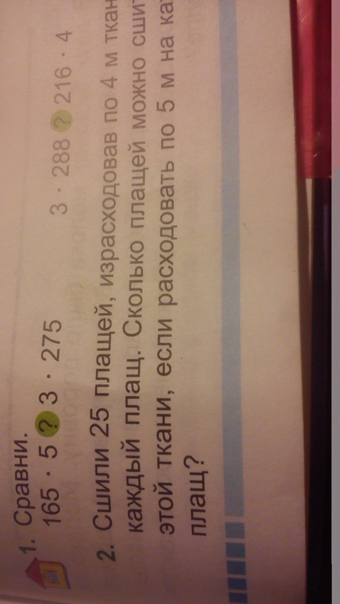 1) 25 умножить на 4 получается 100 метров ткани всего 2) 100 делим на 5 получается 20 плащей