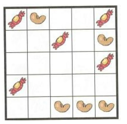 Плантации обозначены 5 конфетами и 5 фасолинами. Спутник