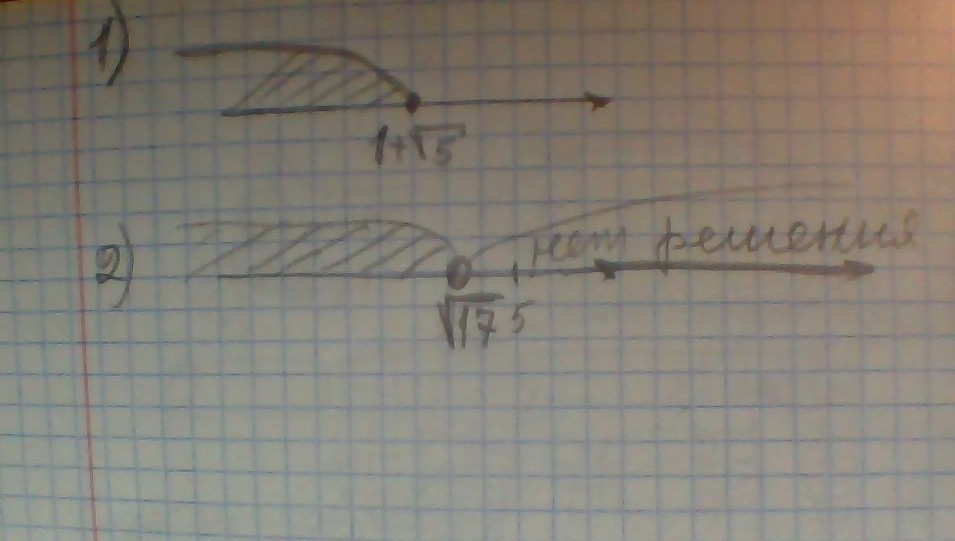 Т.к. √17>√5+1,то все числа х≥√17 не удовлетворяют ни одному из неравенств