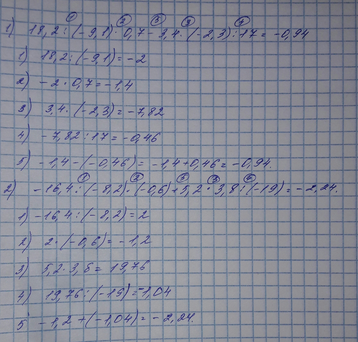 помогите решить пример, желательно что бы были написаны действия 1)18.2:(-9.1)•0.7-3.4•(-2.3):17