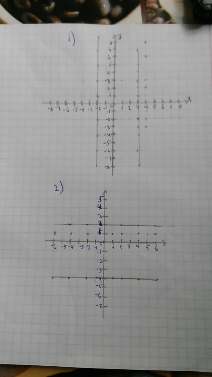 1)а)На координатной плоскости отметьте 5 точек имеющих абсциссу, равную 4. запишите координаты всех этих точек. Как вы думаете, все точки с абсциссой, равной 4?