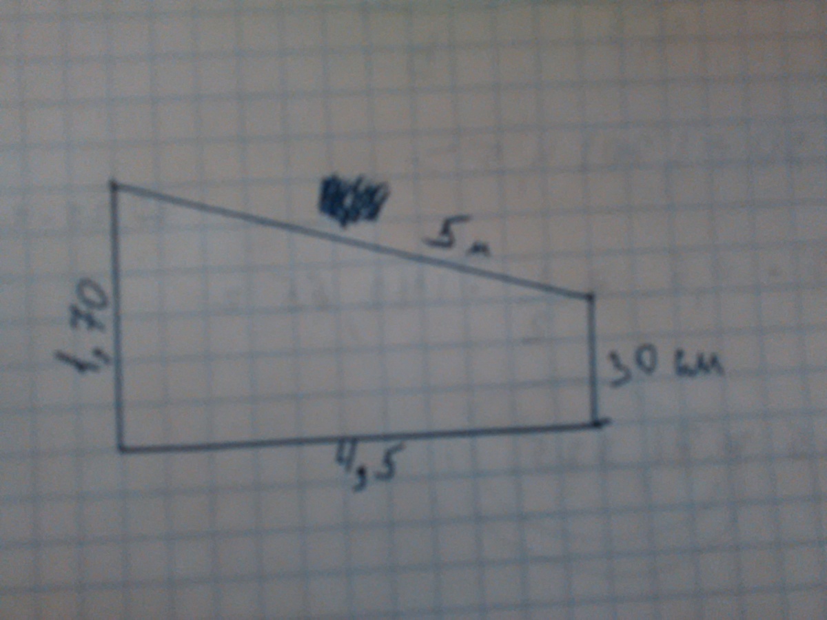 Можно представить эту фигуру как прямоугольник(4,5м*0,3м) + треугольник(5*(1,7-0,3)/2).Посчитай и оформи)