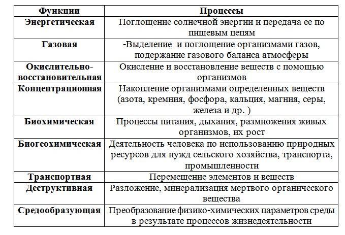 Таблица "Живое вещество биосферы и его функции " во вложении