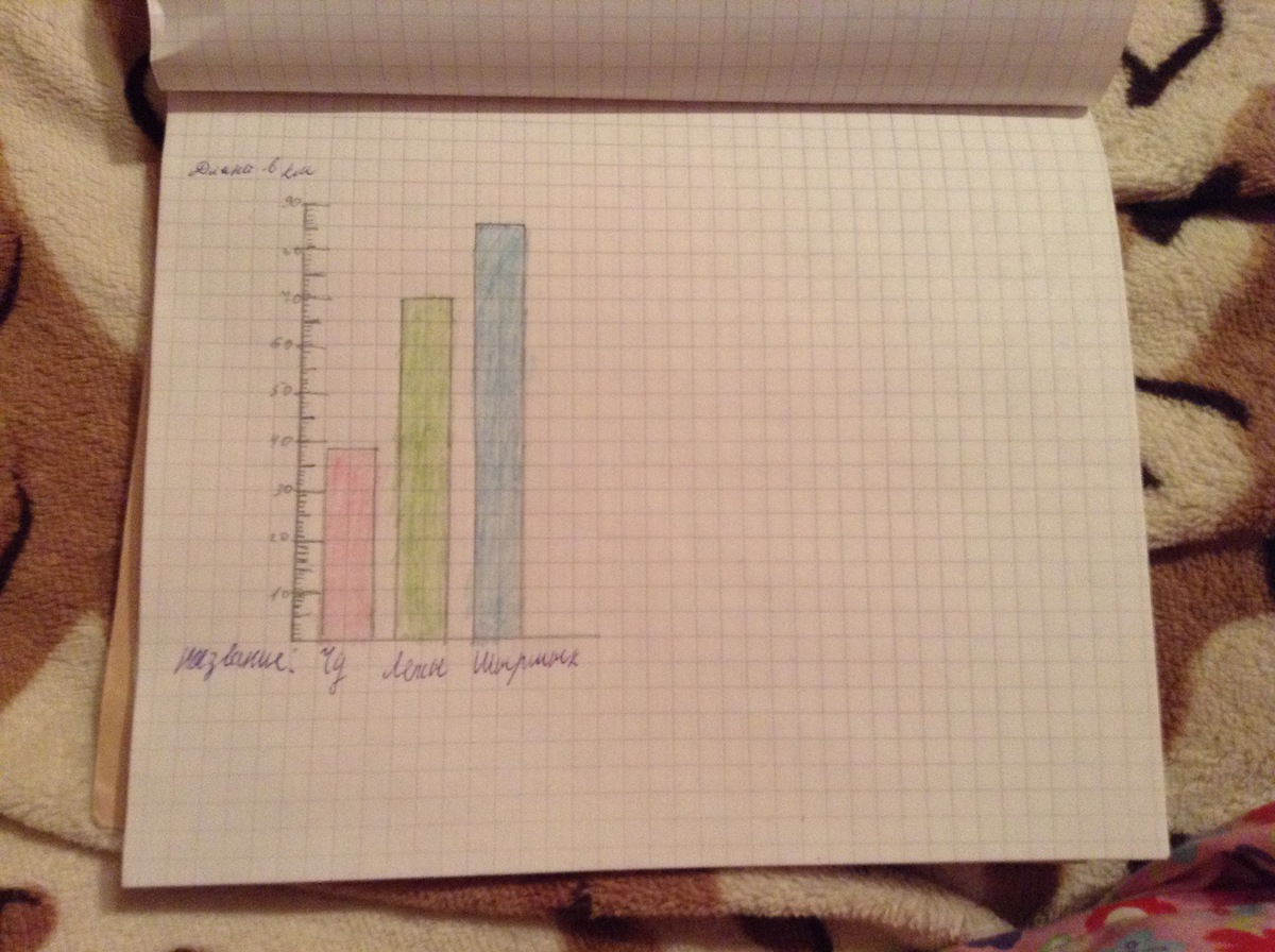 На территории юга нашей республики в разное время были прорыты каналы: Чу-протяженностью 39 км, Лепсы-70км и Шыршык-86км. Постройте столбчатую диаграмму, используя эти данные..