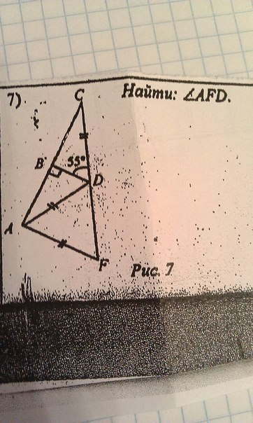 Угол AFD=ADF=70,т.к FA=AD,т.е треугольник ADF-равнобедренный