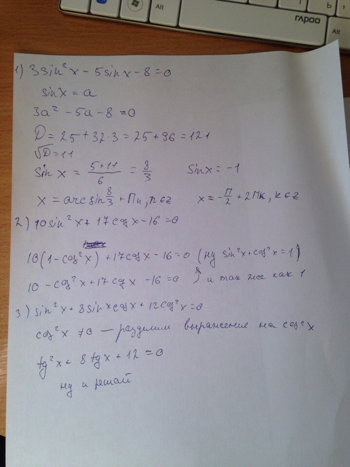 3)sin^2x + 8sinx cosx + 12cos^2x = 0