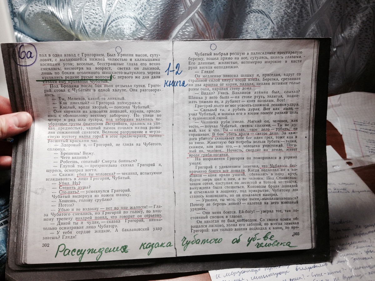 Чубатый рассуждает об убийстве человека, сравнивая этот поступок с убийством зверей; представляет людей не в качестве сосудов души,а в качестве пушечного мяса; он живет по законам природы - Сильный выживает, слабый - погибает.В условиях войны или вооруженного конфликта такое видение жизни единственно правильное, наружу выступают инстинкты, отстраняя все человеческое. Когда цель - выжить, не до сантиментов.Только такое поведение сохраняет целостность человека с природой,оно оправдывает убийство, как потерю чужой жизни вместо своей.