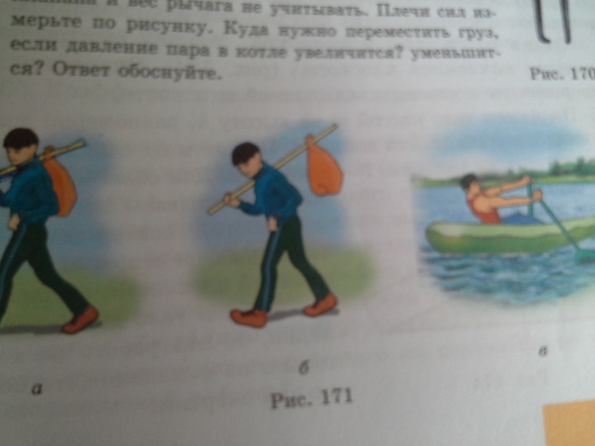 укажите точку опоры и плечи сил у рычагов, изображенных на рис. 171.