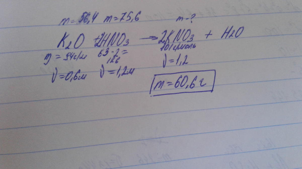 калий гидроксид количеством вещества 0,6 моль полностью нейтрализовали нитратною кислотою.Какая масса калий нитрат образовалась?
