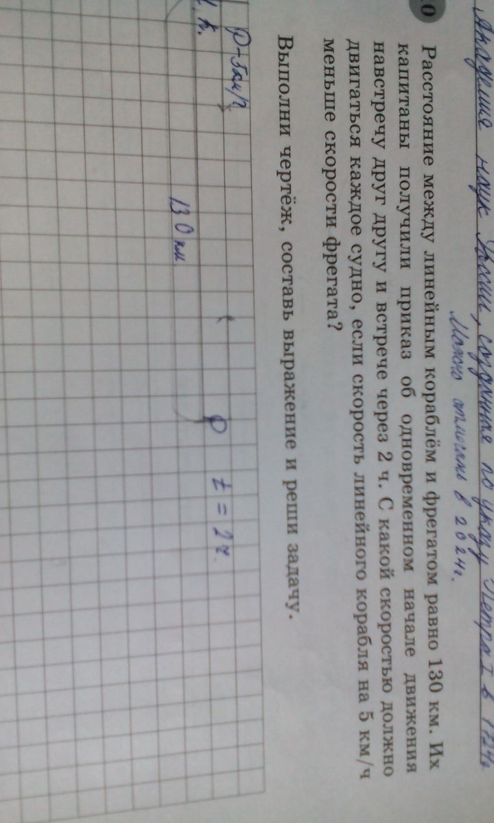 2 корабля встретились через 2 часа . Расстояние 130 км.