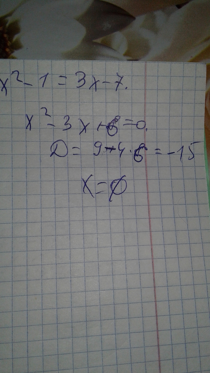 ответ : x пустое множество т.е нет решений т.к дискриминант отрицательный