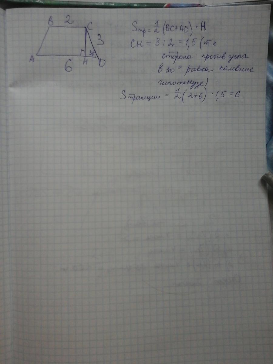 площадь трапеции равна 6