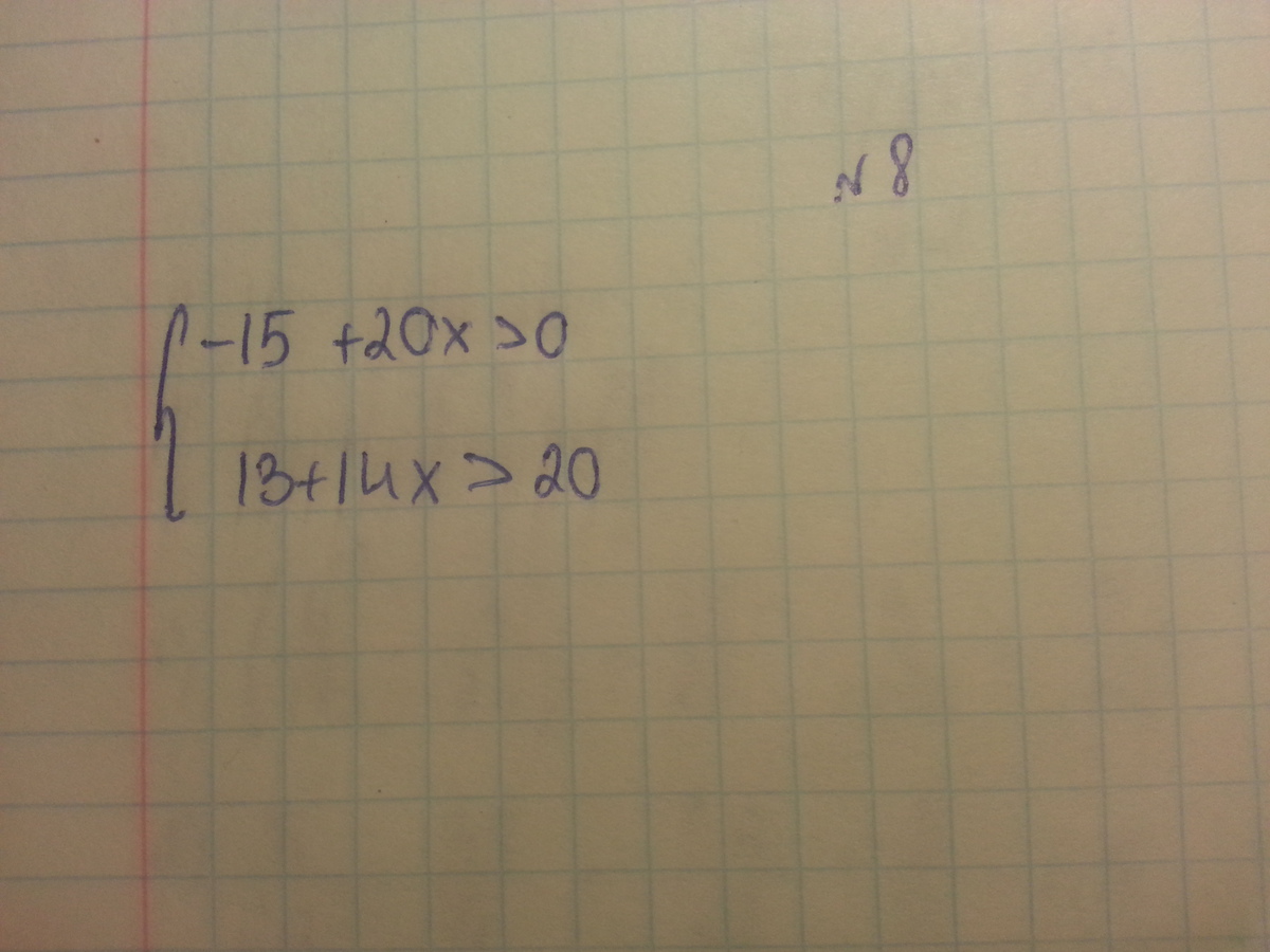 1)-15+20x bolše čem 0, 20x bolše čem 15, x bolše čem 15/20,