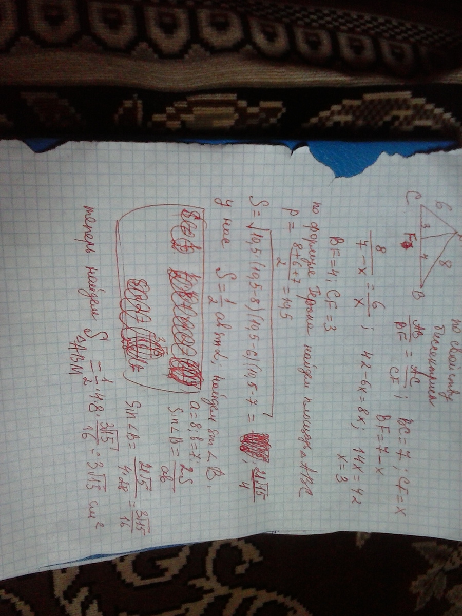 CosВ=(64+49-36)/2*8*7=11/16. Формула приведения: Sin²α+Cos²α=1.