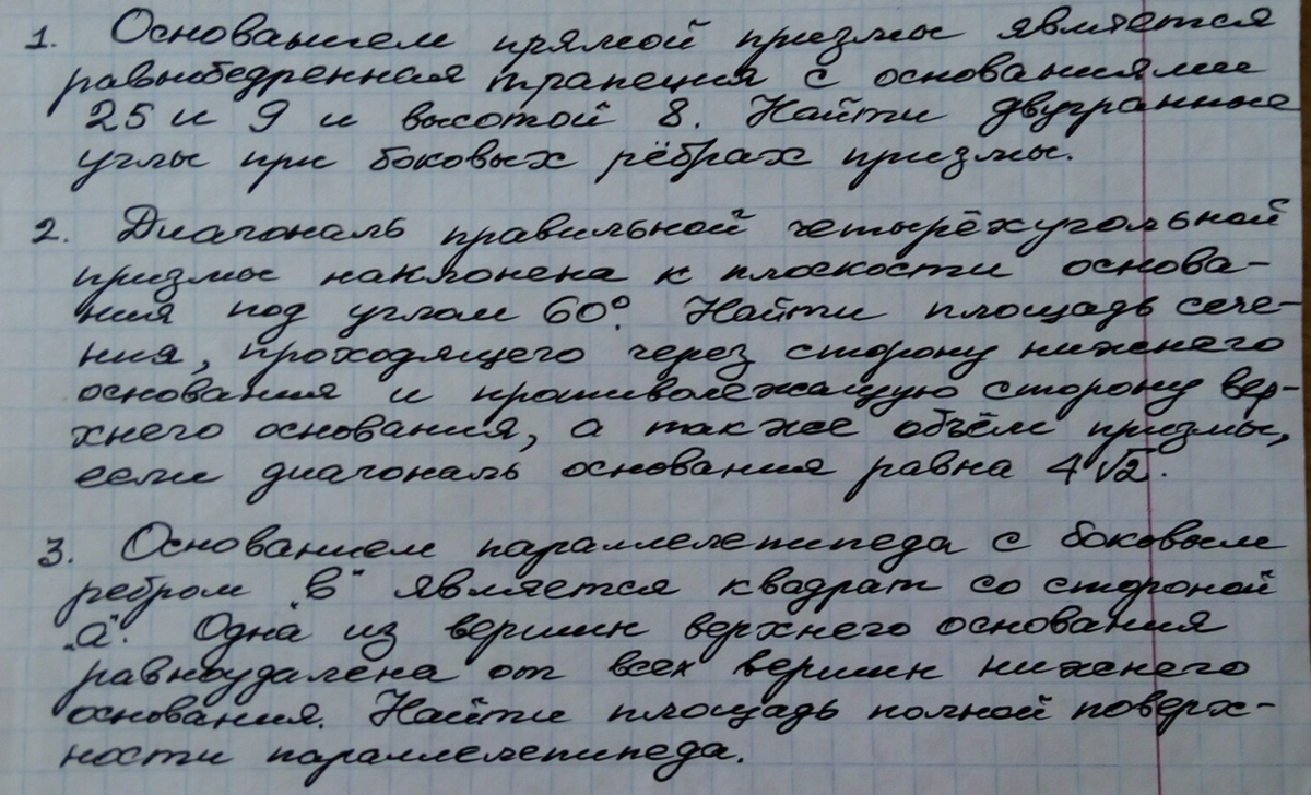 3. Пусть вершина А1 верхнего основания равноудалена от вершин А, В, С и D нижнего основания. Следовательно, она проецируется в центр нижнего основания - пересечение его диагоналей. Проведем высоту А1Н грани АА1D1D. Тогда: