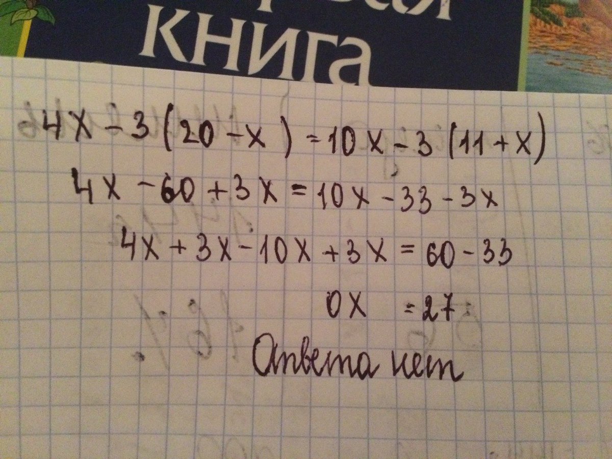 4х-3(20-х)=10х-3(11+х)