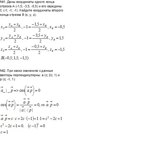 отрезка А (-1,5; -3,5; -0,5) и его середины
