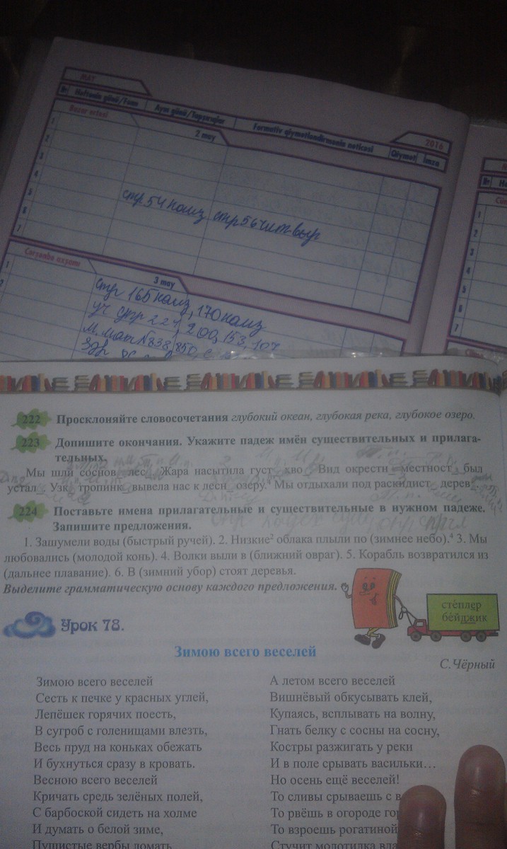 Зашумели воды быстрого ручья. Низкие облака плыли по зимнему небу. Мы любовались молодым конем. Волки выли в ближнем овраге. Корабль возвратился из дальнего плавания. В зимнем уборе стоят деревья.
