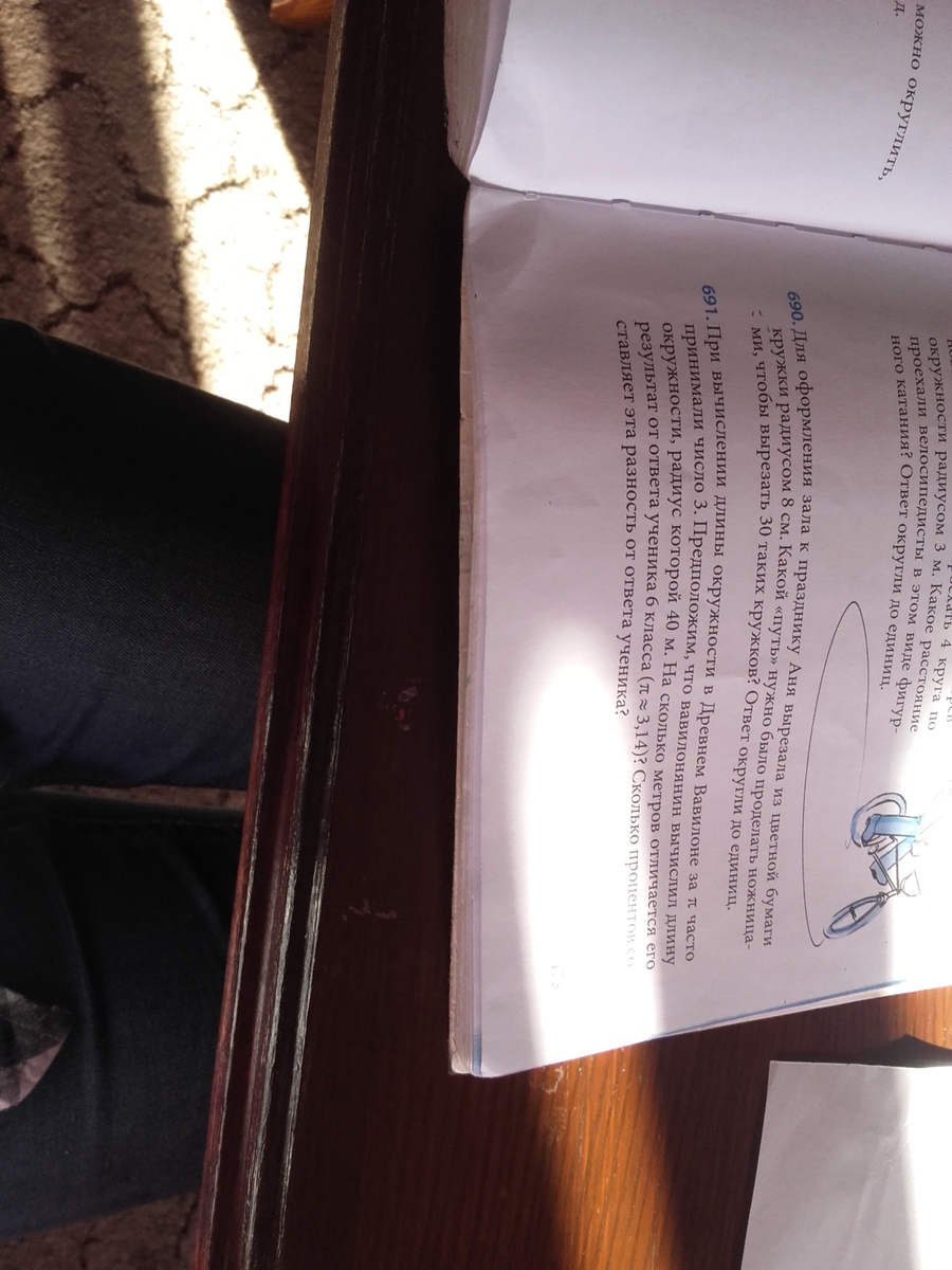 1) 2 * 3 * 40 = 240 (м) длина окружности, вычисленная вавилонянином; 2) 2 * 3,14 * 40 = 251,2 (м) длина окружности, вычисленная учеником; 3) 251,2 - 240 = 11,2 (м) разность ответов; 4) 11,2 : 251,2 * 100 ≈ 4,5 %. Ответ: на 11,2 м; разность составляет приблизительно 4,5 % от ответа ученика.