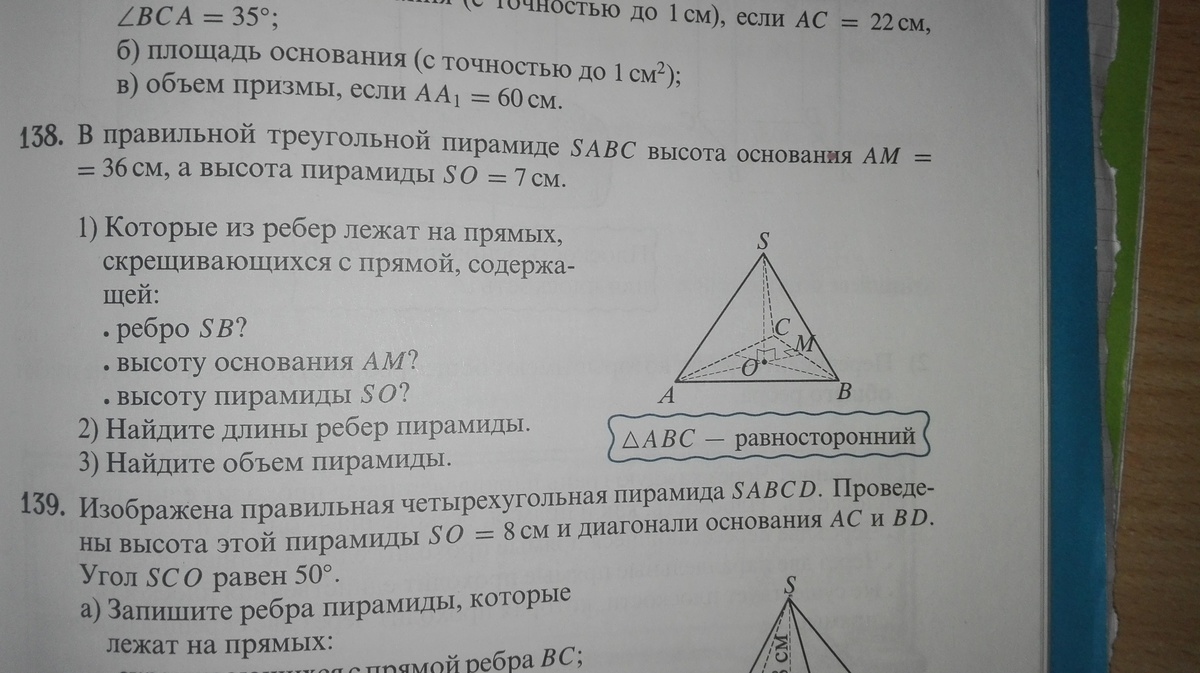 Ответ. АВ=ВС=АС=24√3;SA=SB=SC=25;V(пирамиды) =336√3.