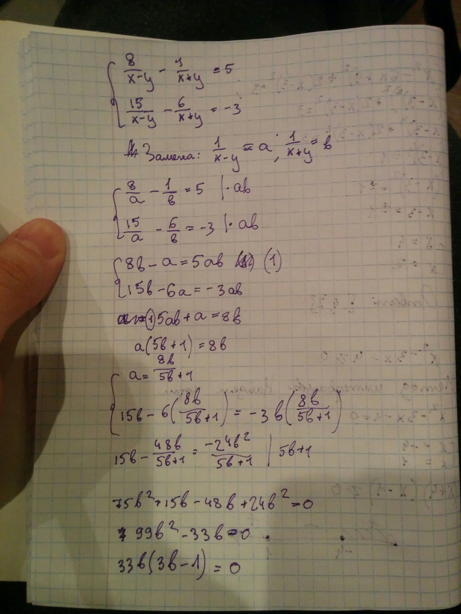Заменим 1/(x-y) и 1/(x+y) на a и b. Решим новую систему. И выполним обратную замену