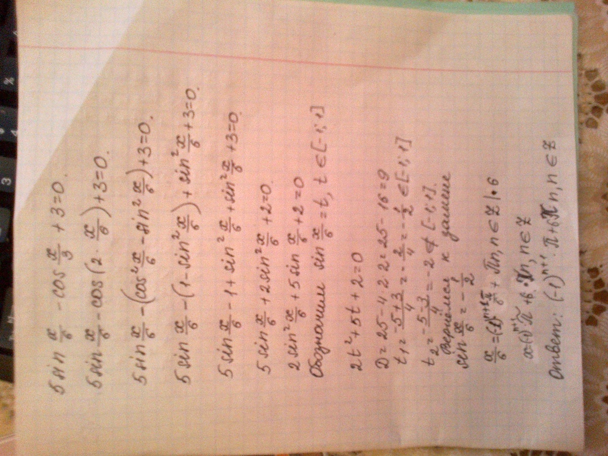 5sin(x/6)-1+2sin^2(x/6)+3=0