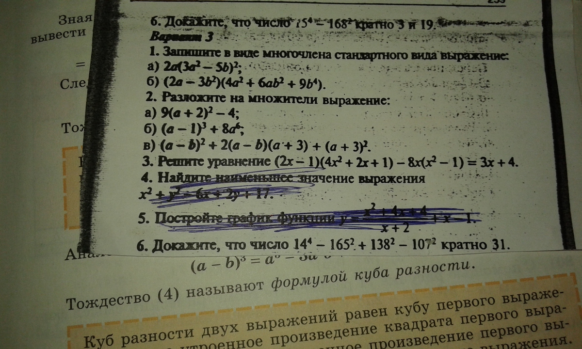 Помогите пожалуйста. 1.а)2a (3a^2-5b)^2 b)(2a-3b^2)(4a^2+6ab^2+9b^4) Если не сложно можно другие задания сделать .