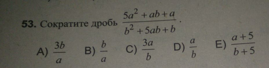 ответ D) в числителе выносишь а, в знаменателе в и сокращаешь)