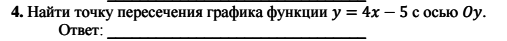 ось Оу это вертикальная ось, тебе нужно либо построить график функции, либо пойти другим путем: начальная формула функции это у=kх+m. Коэффициент m отвечает за "вертикальные шаги" от нуля до точки пересечения графика с осью Оу(короче говоря, это игрик). То есть в нашем случае это число 5. Но точка пересечения не обозначается одной точкой,нужен еще икс, право или влево мы шаги не делаем,поэтому х=0,а у=5. точка пересечения (0;5)