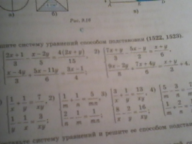 Из уравнения (1) х = 2у + 5 и подставляем в уравнение (2):