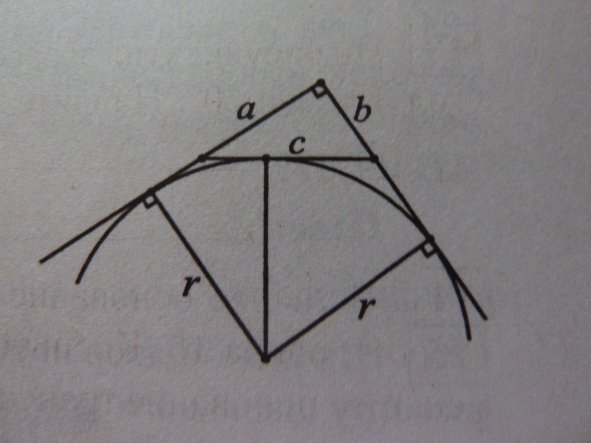 Обозначим вершины треугольника, противолежащие сторонам a, b, c, через A, B, C (C — вершина прямого угла), а точки касания — через A1, B1, C1 соответственно. Если O — центр данной окружности, то OA1CB1 — квадрат со стороной, равной r. Поэтому
